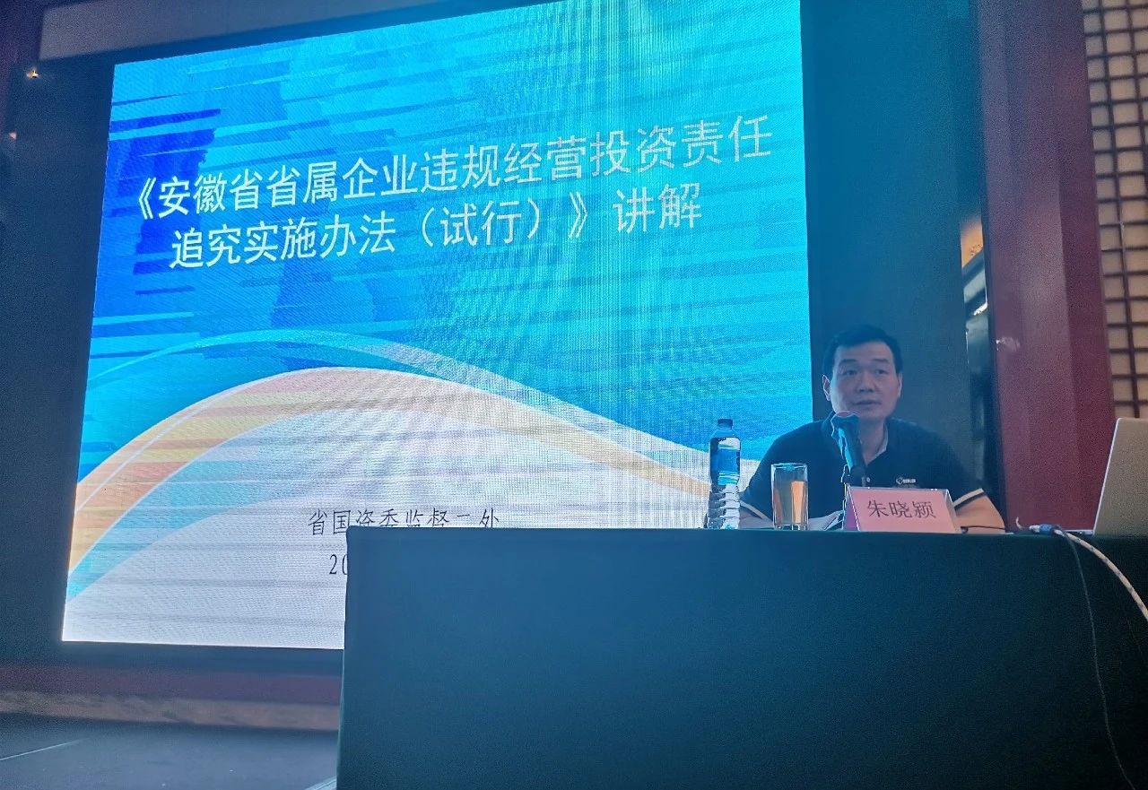 此次培训邀请了省国资委监督二处朱晓颍处长、省产权交易中心产权一部鲁岚部长授课。朱晓颍对《安徽省省属企业违规经营投资责任追究实施办法(试行)》作了全面解读,鲁岚则从实务操作方面详细介绍了企业国有资产交易流程。