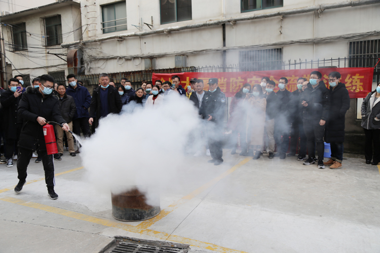 实施消防安全应急演练。12月4日,服装公司举行了办公楼火灾应急处置演练,随着警报声响起,各楼层消防疏散引导员迅速到位,通知并引导各部门人员有序从消防通道安全撤离。在一楼室外组织开展了对灭火器的使用教学,确保员工掌握基本灭火器材的操作,力争将火灾隐患消灭在萌芽状态。