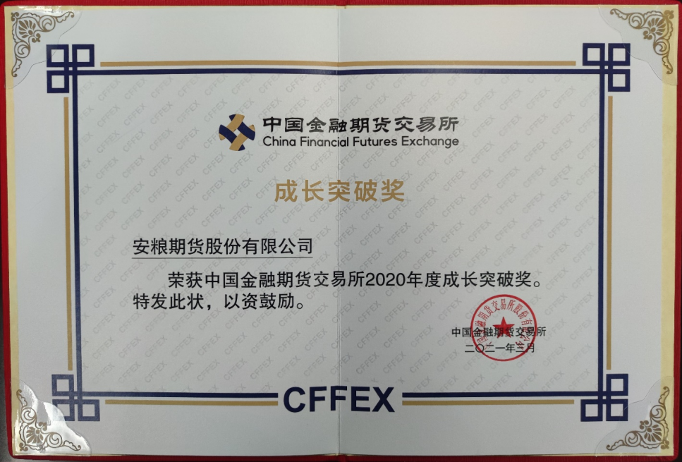 近日,中国金融期货交易所公布了2020年度优秀会员名单,国贸集团所属安粮集团安粮期货公司在此次评选中荣获“成长突破奖”。