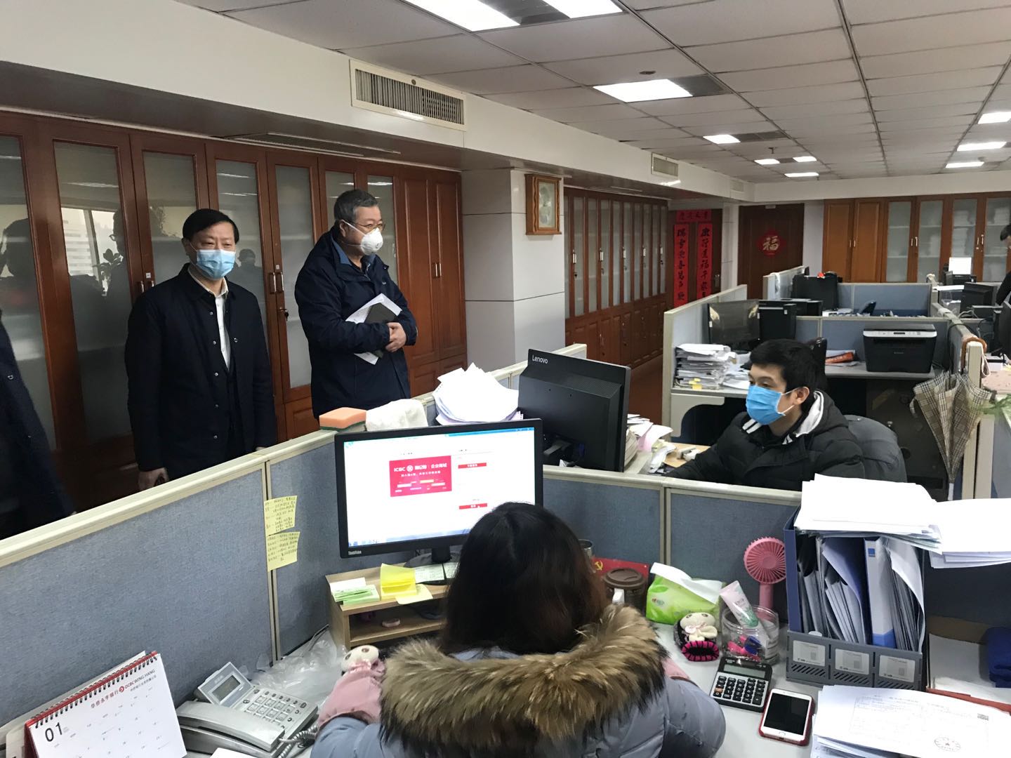 范阳、包祥华先后分赴省进出口、轻工国际、技术公司、安粮集团、天彩丝绸等集团成员企业,检查疫情防控措施、防疫物资储备和员工防护用品佩戴等情况,深入部分业务部门,与工作人员亲切交谈,详细了解近期订单执行、客户反映、货物出运等各项业务开展情况。
