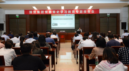 为庆祝中国共产党成立100周年,进一步推动党史学习教育走深走实,6月10日,国贸集团党委举办党史学习教育专题报告会,邀请省委讲师团专家、省委党校马克思主义学院院长汪兴福教授作专题授课。集团领导、各成员企业班子成员、各党支部书记和部分党员代表共约100人聆听了报告会。